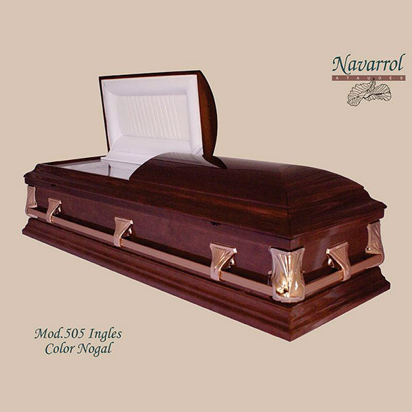 Ataúd de madera de medio cristal