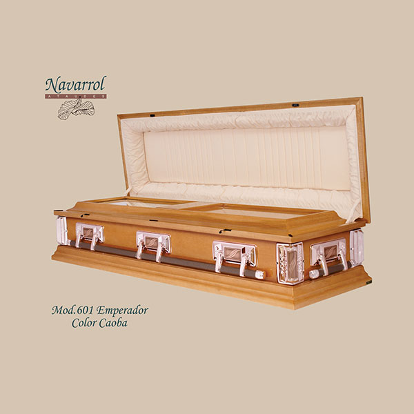 Ataúd de madera de tapa corrida y tapa interior con cristal